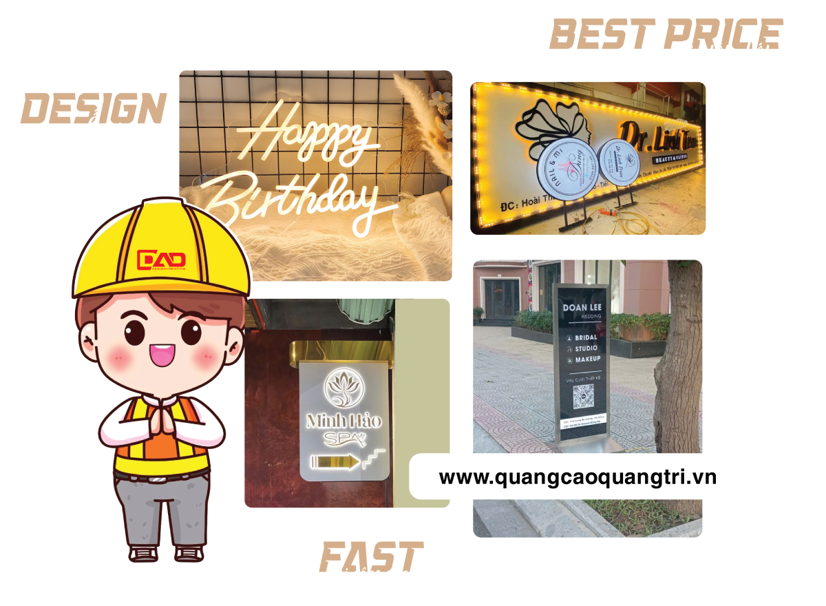 QUANGCAOQUANGTRI.VN – CÔNG TY TNHH MTV QUẢNG CÁO ĐẠI THẮNG được thành lập bởi các chuyên viên thiết kế và sản xuất với thâm niên lâu năm trong việc thiết kế và thi công hoàn thiện biển hiệu trên các chất liệu tại Quảng Trị. Chúng tôi luôn mong muốn gia tăng thương hiệu của khách hàng thông qua các hệ thống bảng hiệu, bởi thương hiệu là tài sản vô hình nhưng đóng góp một phần không hề nhỏ trong việc phát triển thương hiệu và tiếp cận khách hàng. Một số lĩnh vực thế mạnh của CÔNG TY ĐẠI THẮNG